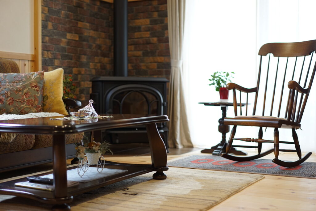 自然素材のRootsの家の空間には薪ストーブがよく似合います。