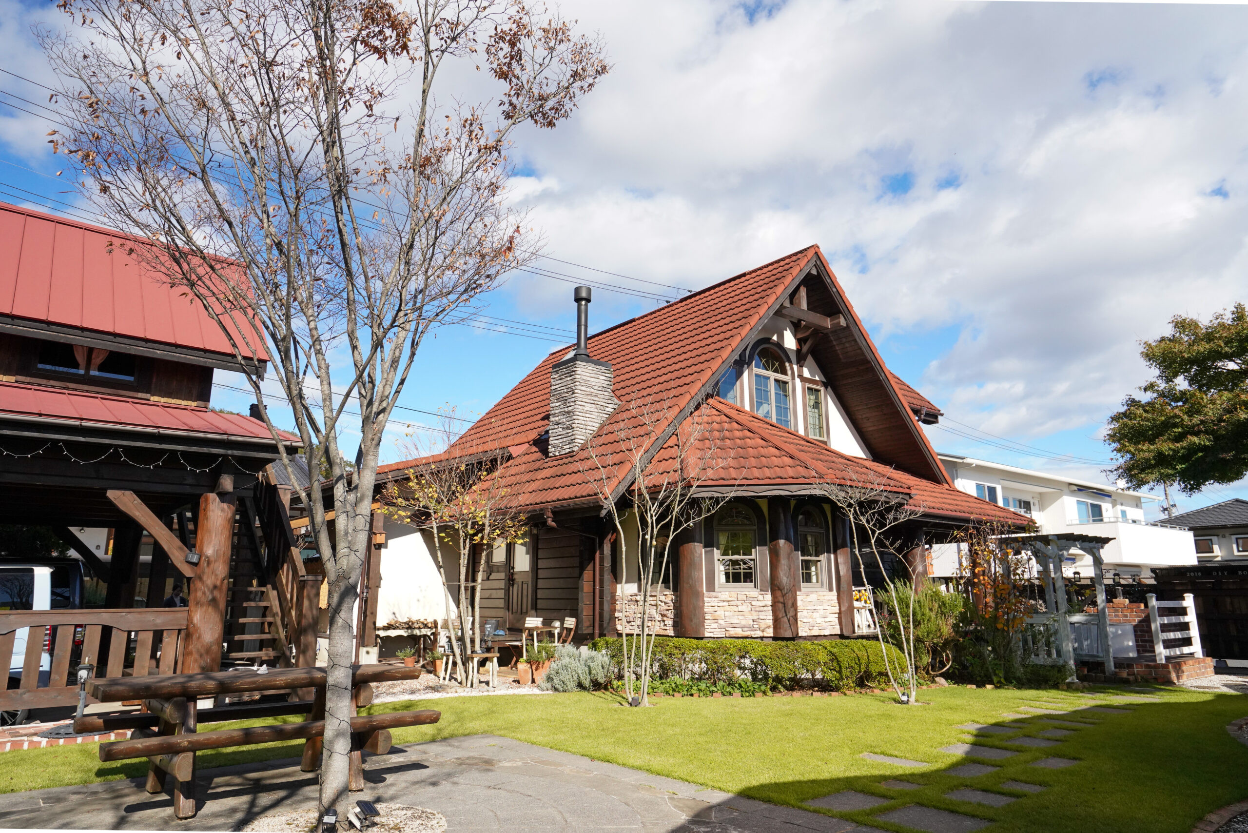Roots工務店では、建物だけでなくその外の空間——お庭や玄関まわり、ウッドデッキ、アプローチ、植栽など——も含めてトータルでご提案しています。