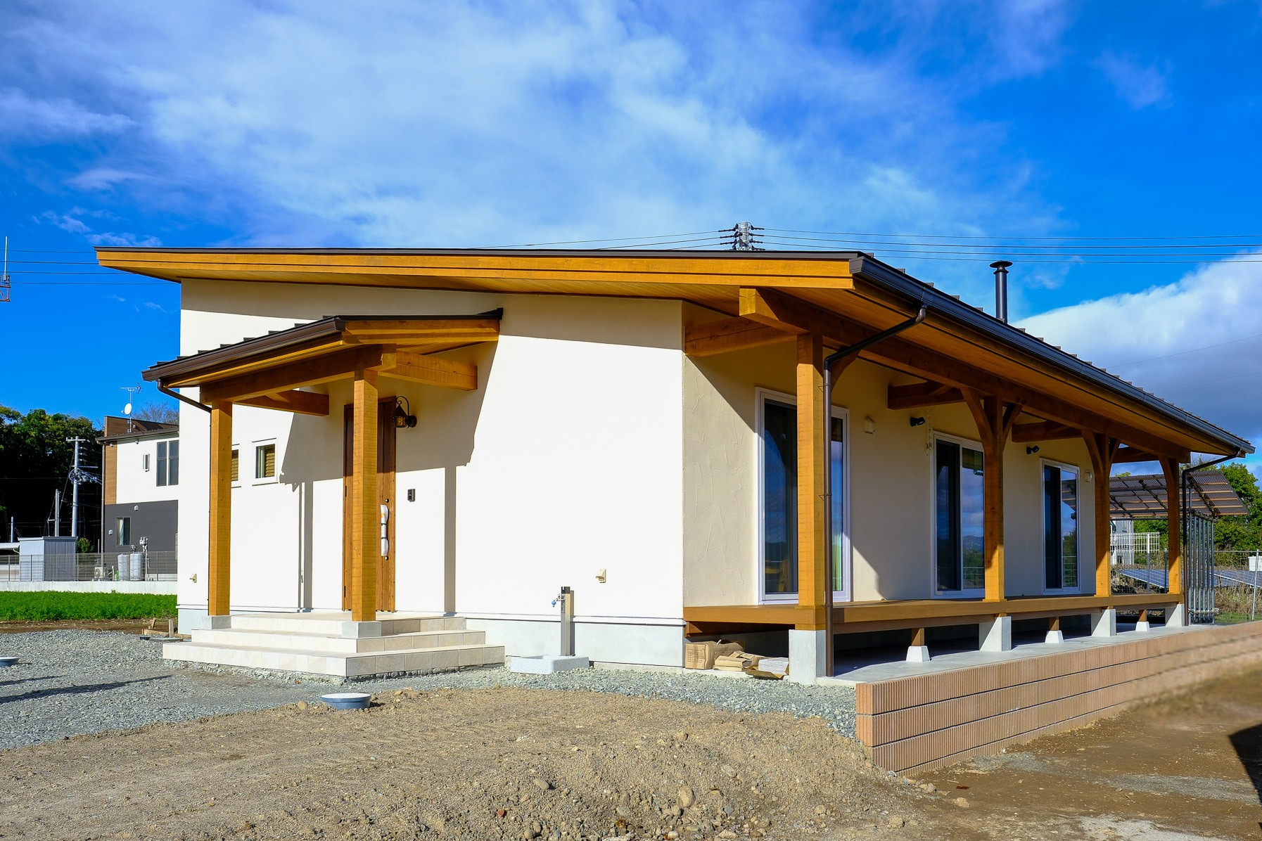今回完成したのは、片流れ屋根の平屋のお住まい。