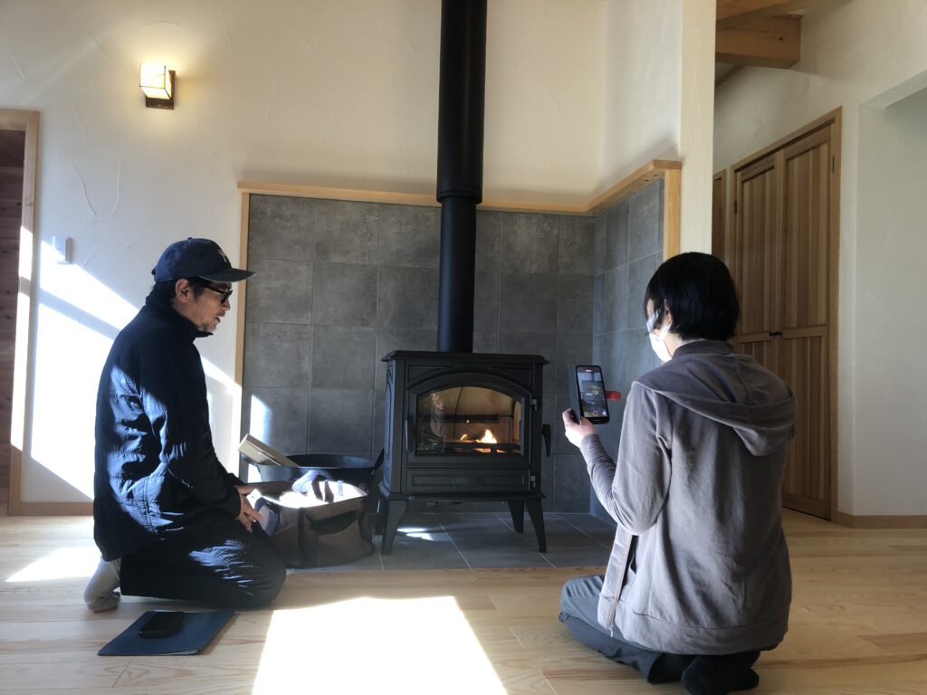 お施主様は真剣に風間さんのお話を伺いながら、薪ストーブの基本的な使い方や、上手な火の育て方などを学ぶ時間となりました。