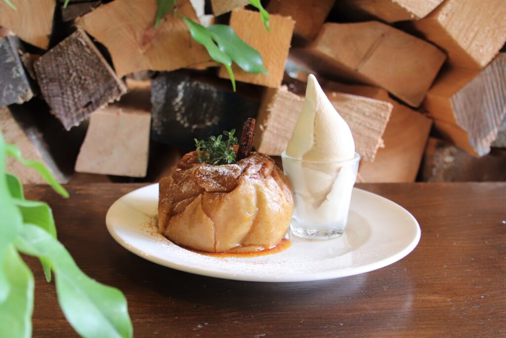 じっくり焼き上げた熱々リンゴにシナモンのスパイスが効いて、冷たいソフトと一緒に食べるとあっという間になくなってしまう至福の一皿であります。
