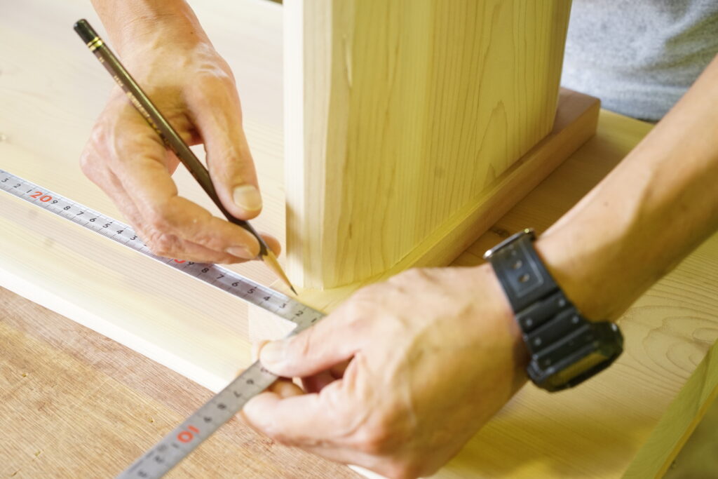 この「自社で使い切る仕組み」があるからこそ、本来は贅沢な天然乾燥ヒノキを、家全体にふんだんに使うことができます。 玄関を開けた瞬間の、あの深呼吸したくなる香り。それは、この工房という根っこがあるからこそ実現できるものです。