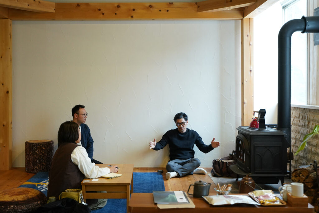 火入れの実演を見ながら、薪ストーブの暮らしを雑談形式で紹介。
