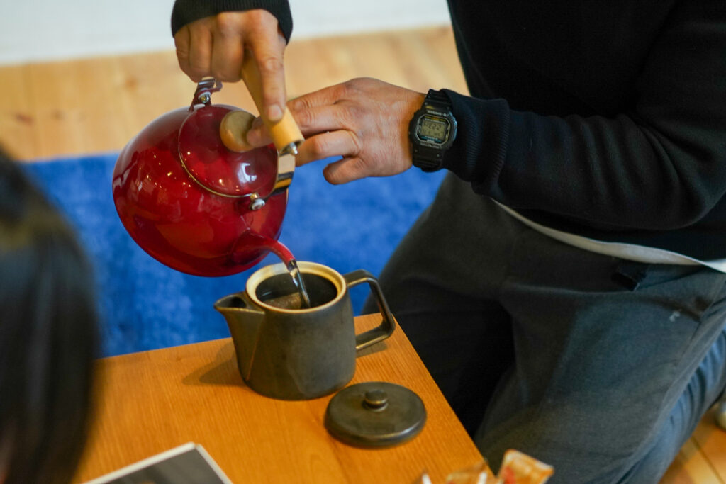 薪ストーブで沸かしたお湯でティータイム。